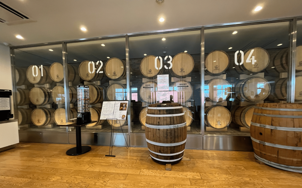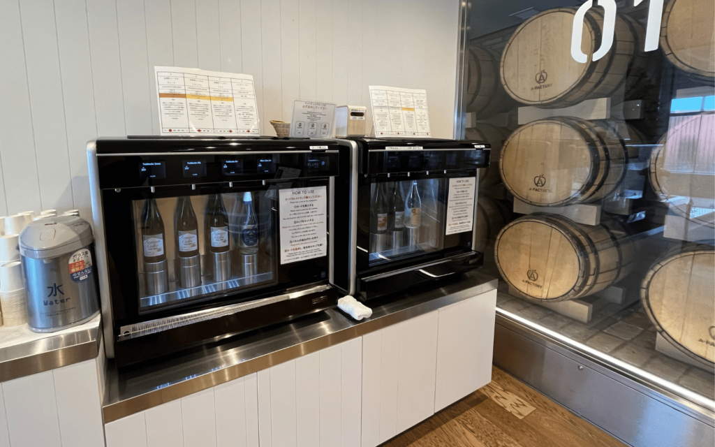 2Fラウンジでは、工房で作られるシードルのほか、青森のシードル8種類のテイスティングが可能です。プリペイドのテイスティングカードを購入すれば、マシーンが金額分のシードルを注いでくれます。まず2Fでお気に入りの銘柄を見つけた後、1Fで購入するのがおすすめです。