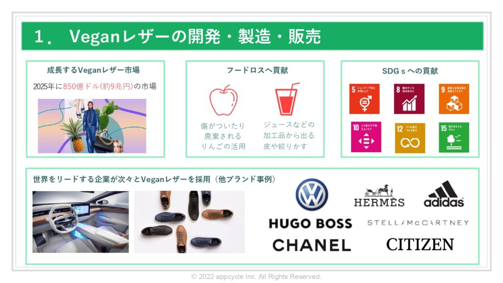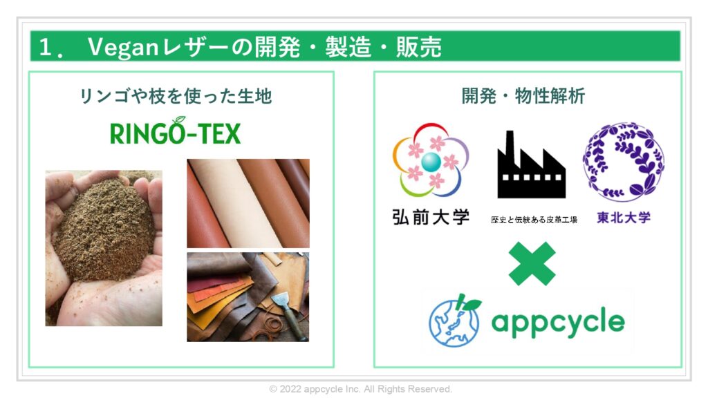 ・環境に配慮したりんごのヴィーガンレザーの製造販売