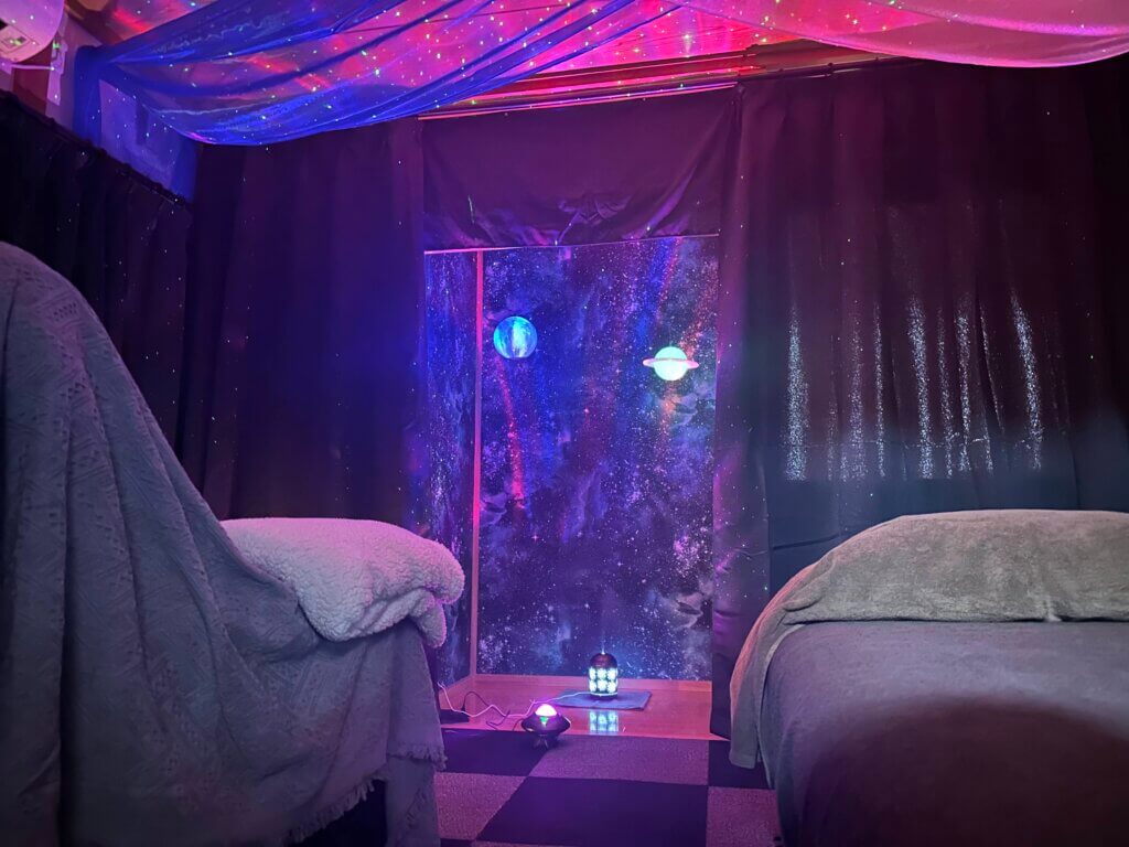 普段の日常生活では味わえない、宇宙やお月様、星空を感じさせる空間にこだわっており喧騒から逃れ、別の世界を体験できるのが特徴です。
