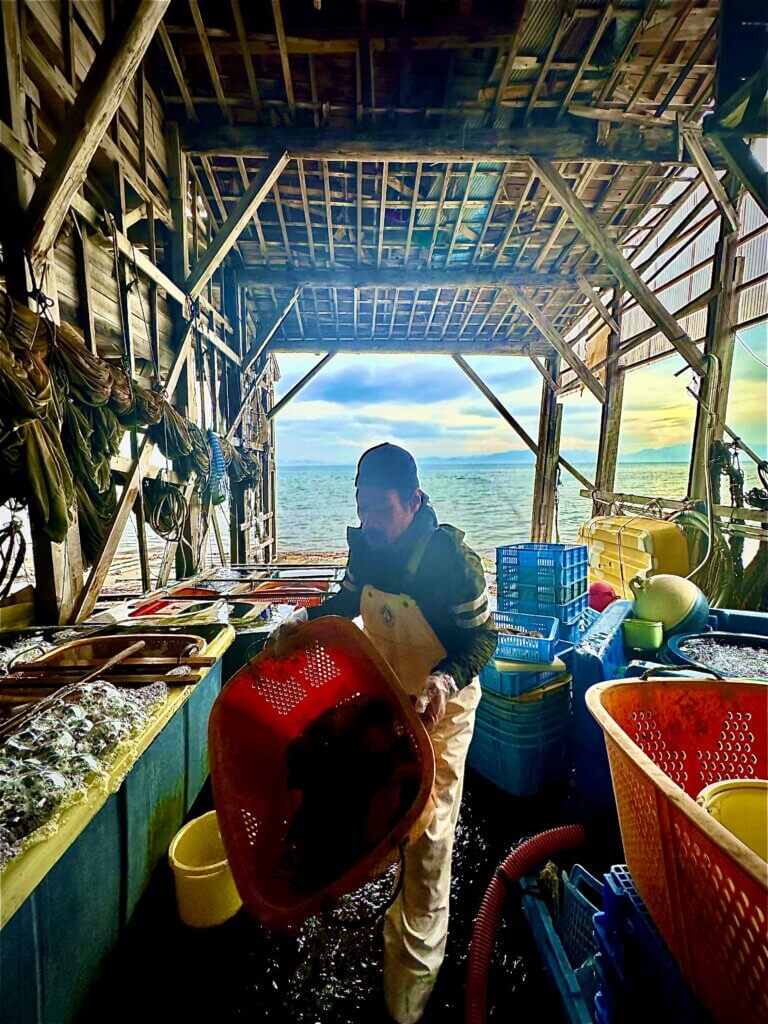 そのため成貝まで養殖する漁師は少ないのですが、すこしでも多くの貝が大きく育つように工夫を凝らして漁をしています。